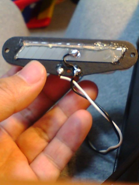 テレキャスターのピックアップを意識して、コイルの底に鉄板を